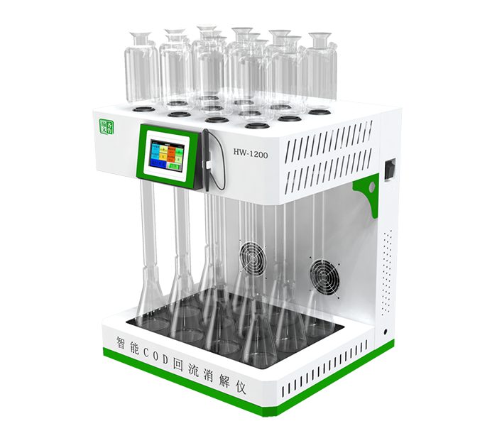 HW-1200型國標COD回流消解儀是依據國標方法HJ828-2017化學需氧量的測定(重鉻酸鉀法)研發,采用智能液晶觸控屏設計,一鍵操作簡潔方便,自動完成消解、冷卻過程。無需人工值守。微晶面板加熱,升溫速度快,受熱均勻。配備專用冷凝管支架,操作更安全。