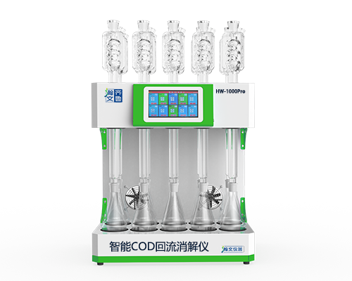 HW-1000Pro型智能COD回流消解儀是依據國標方法HJ828-2017化學需氧量的測定(重鉻酸鉀法)研發,采用7寸智能液晶觸控屏設計,一鍵操作簡潔方便,自動完成消解、冷卻過程,無需人工值守。遠紅外熱輻射加熱,升溫速度快,受熱均勻。配備專用冷凝管支架,操作更安全。